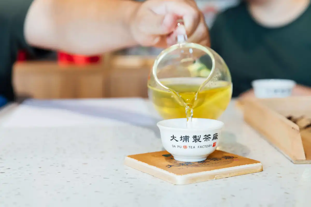 興建新門市之前,他們耗費五年,養出一整片不灑肥料的有機茶園。以「茶葉輕旅行」的概念,提供客人完整的食農體驗,走入大自然,嘗試採摘完美的一心二葉,認識作為防風圍籬的苦茶樹,與東方蜂鷹、臺灣藍鵲、白鷺鷥相伴,同時品茗以當地的特殊品種「青心柑仔」產製的碧螺春綠茶、東方美人茶,以及搭配無毒玫瑰花的蜜香紅玫瑰花茶。說到香片,陳宣和表示,他們將茶葉與剔除花蕊的茉莉花一起窨製,少了苦味、保留花香,成為大埔製茶廠的招牌茶品之一。