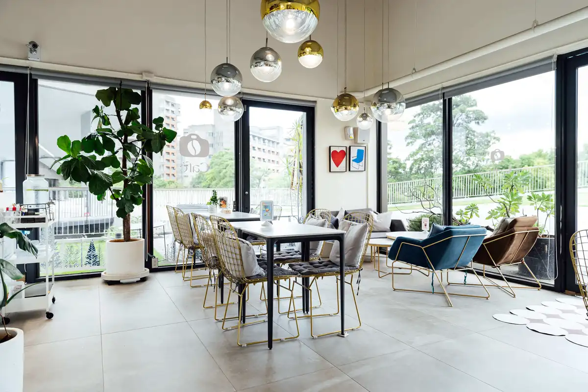 面向臺北大學心湖的會館二樓,坐落著紙相機品牌「紙可拍PAPERSHOOT」以及同名咖啡館。餐點針對假日遊客和社區家庭與銀髮族,提供精緻甜點、可頌、布朗尼外,也包含素食、輕食與寶寶套餐,部分小點使用店外種植的香草入菜。手沖咖啡依季節更換新鮮豆子,結合店家講究的數據沖煮經驗,帶來穩定且細膩的咖啡風味。咖啡館三面開窗,面對前方綠意,讓人能在光影與綠景之間享受放鬆時光。