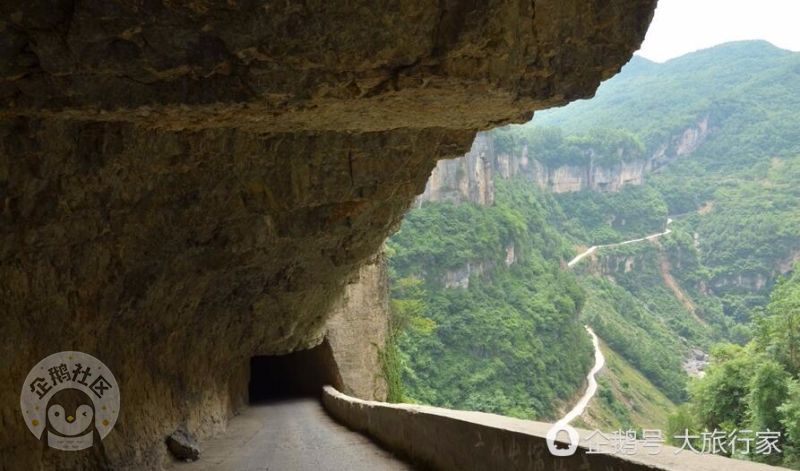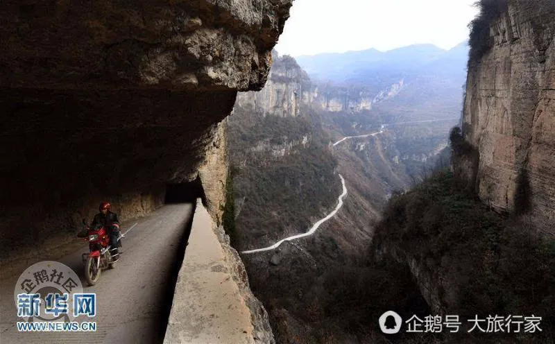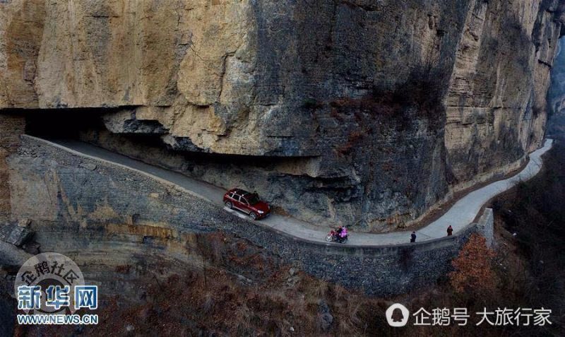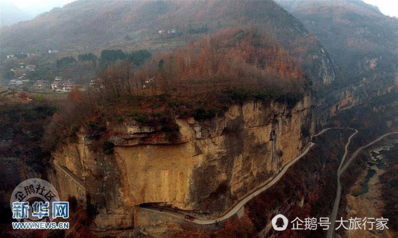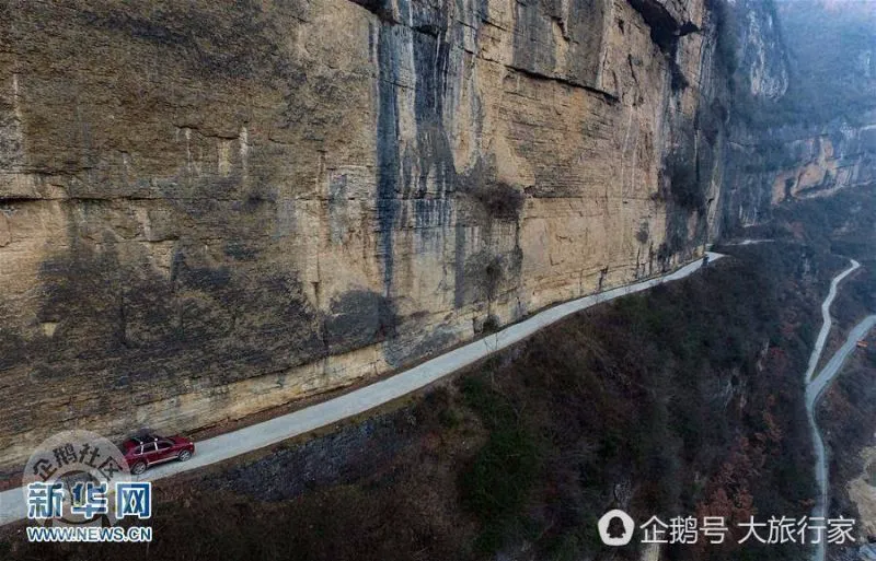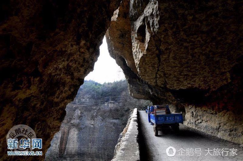 这是一条长约一千多米、成“之”字型的挂壁公路,穿行西流河峡谷之中。(新华社记者 陶明 摄)