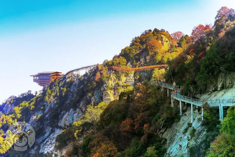 少华山的红叶分布在两大景区,一是潜龙寺景区,这也是少华山的主景区,很火的玻璃栈道就在这里。这个景区需要先乘坐缆车到达海拔1600米左右的平台,在大约15分钟的缆车乘坐过程中,赏红叶之旅也就正式开启了。
