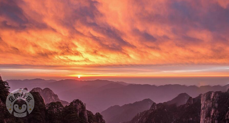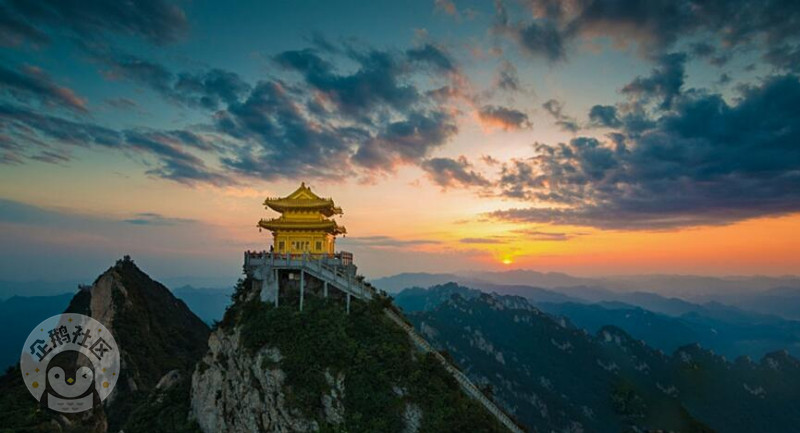 老君山日落,在壮美的晚霞显映下金顶更加玄幻迷人,无论背景是云雾还是群山,这里都是很棒的一个视角