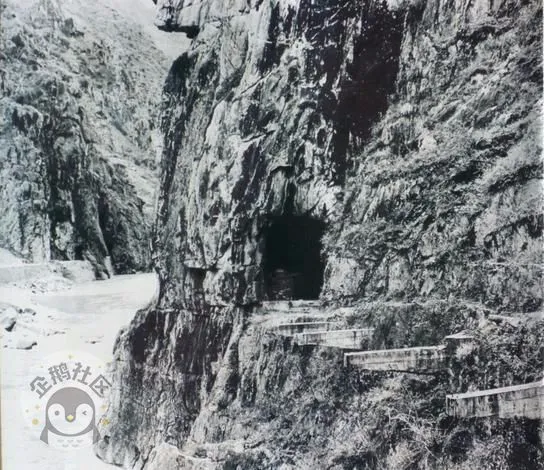 1969年,石门大坝修建,褒斜道及石门遗址被水库全部淹没,石门内外104块堪称稀世珍宝的古文石刻,仅有13件摩崖石刻移至汉中博物馆,后遂名之为“石门十三品”。图为1964年的石门隧道,现已淹入水下。