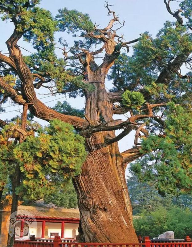 【仓颉手植柏】树龄约5000年,生长在白水县仓颉庙,树高17米、胸围7.28米。相传仓颉去世前选择墓地,栽植这棵柏树作记号。(图/网络搜集)