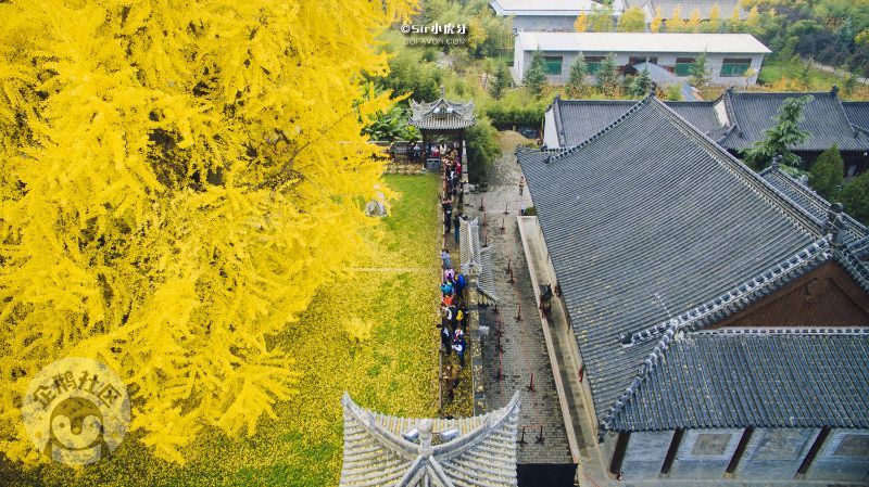 【李世民手植银杏】树龄约1400年,位于西安市长安区终南山下的古观音禅寺。逢秋冬叶落季节,“满地黄花堆积”,引游人纷纷前往欣赏。(图/小虎牙)