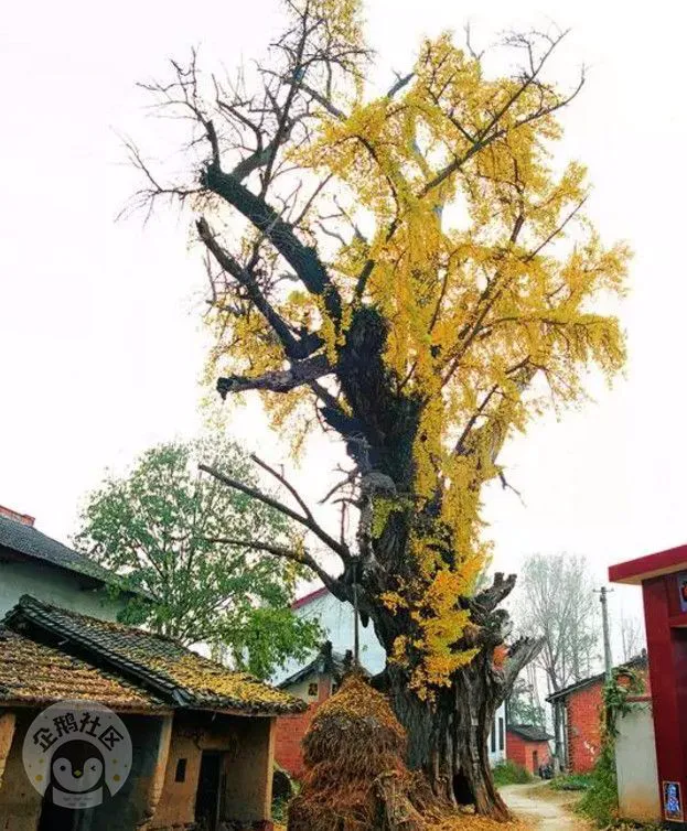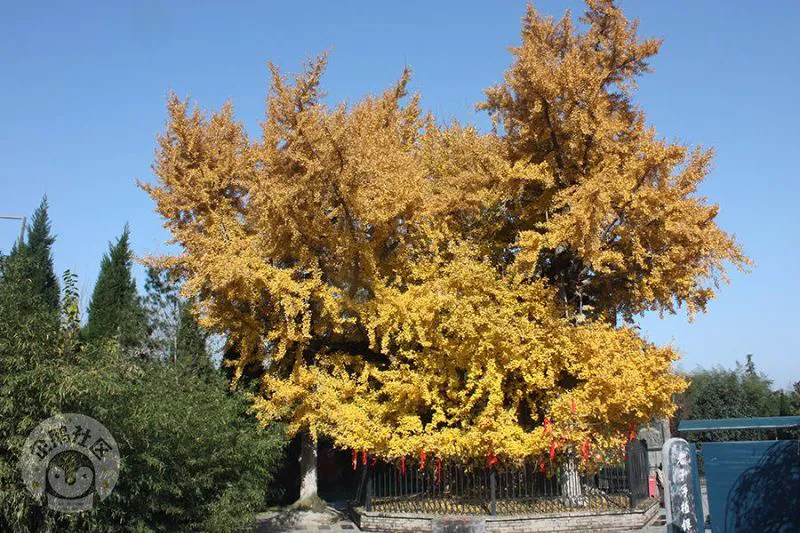 【扁鹊手植银杏】树龄约2400年,生长在城固县老庄镇徐家河村,树高18米、冠幅410平方米,树势苍老,树心空,树冠西主枝渐枯,东北两大主枝繁茂。相传此树为扁鹊在城固行医时手植,近年此地还发现了扁鹊城和扁鹊观遗址。(图/网络搜集)