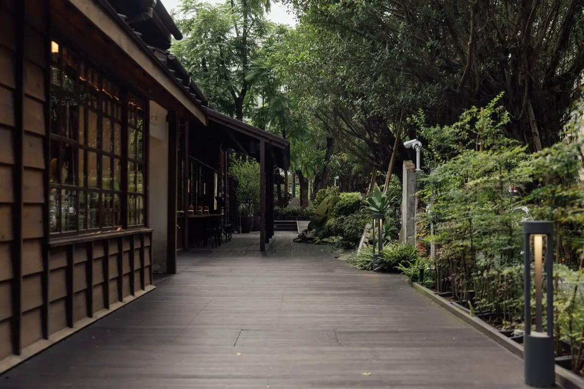 榕錦時光從原本向內封閉的建物轉為公共空間,建物與建物之間、建物與城市之間一定要能產生連結。除了建築本身的冷氣空調、無障礙設施、防潮防施等功能都必須考量進去,又如園區中架高的人行道,是為了防止園區樹木的浮根問題,卻也創造出行走的韻律感。繞行榕錦時光一圈,可以發現步道設置相當完善,散步園區同時,還有一整排老樹相伴,就算不入店面消費,只是行走其中也很享受。