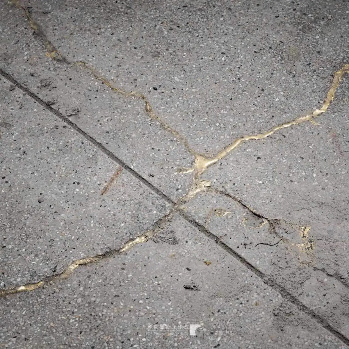 地面則以日本工藝「金繼」概念進行補修,裂縫不被遮掩,反而成為時間流動的證據與美感延續。
