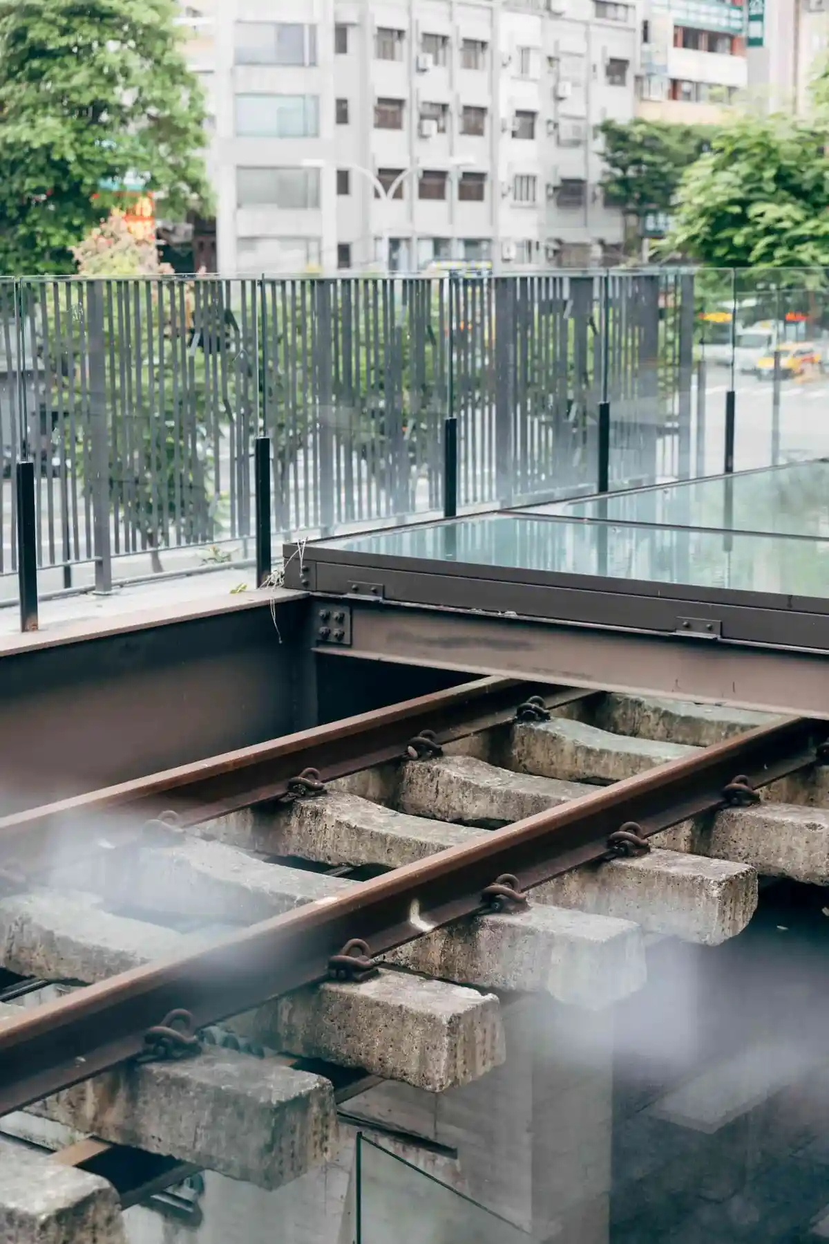 走上火車路空正好就是台中戰後行政區域劃分的中心點,分別指向東區、中區、西區、南區,這也說明綠空鐵道足以囊括起不同區域的產業與文化特色,讓空中廊道凌駕於車水馬龍的大路,透過幾回閒適的漫遊,指認地標也回味城市的記憶。因為重整舊鐵道景觀,進而展示出不少富含歷史價值的風景,包括配合地勢而鋪設出的駁坎與鐵橋,或是俯瞰綠川兩側的鵝卵石築堤,這些地景與遺構都在展示著台中邁向現代城市的開端。