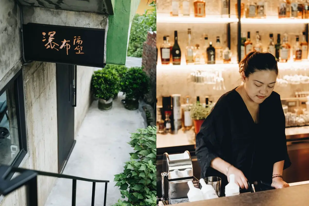 愛酒愛山城的小嵐離開原先的藝術展場規劃執行製作,在聚集了咖啡、書店與餐酒館已是一屋難求的水湳洞,找到一間架高於河邊的空屋。她重新改造老房為「瀑布隔壁Bar」,在現代感的冷調空間裡安放著她收藏的老件,並供應梅酒、清酒、自然酒、四十餘種威士忌,以及用Mojito手法調製成呼應礦業文化的「夢鎏金」。