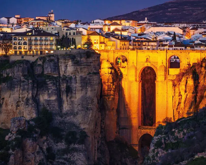 这场战争虽然结局惨烈,却也为龙达带来了新文明。随着龙达城与外界联系得越来越紧密,源源不断的人口涌向这里,龙达的面积也在飞速拓展。西班牙人征服这片土地后,便在峡谷的西北又修建了龙达新城。城区之间的峡谷陡峭而狭窄,于是在1735 年,龙达有了一座新桥。它衔接起新旧两块城区,也串联起新的历史。而今呈现在世人眼前的,是神话般的一切:白色房屋矗立于青山之巅,桥上人来人往,热闹非凡;但只要望一眼桥下,便是万丈深渊;视线再转回眼前,才会发现站在这里犹如身在云端。