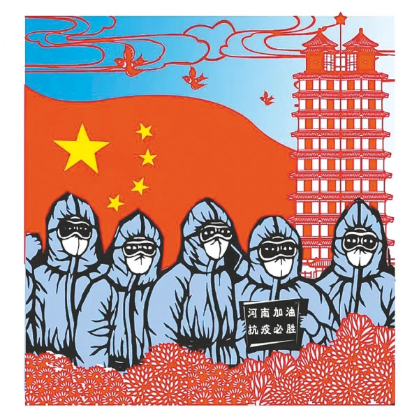 剪纸爱好者雪强说:“抗击疫情,人人有责!我虽然不能冲锋在前,但我想拿起剪刀,创作一些抗疫题材的剪纸作品,为大家加油。愿我省的疫情早日过去,人民平安健康!”