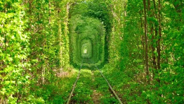 [摘要]位于乌克兰的Klevan的火车道。由枝蔓编制而成绿色拱顶充满了美好的幻想。传闻在隧道里接吻的情侣便能永远在一起,因此被称为“爱的隧道”。