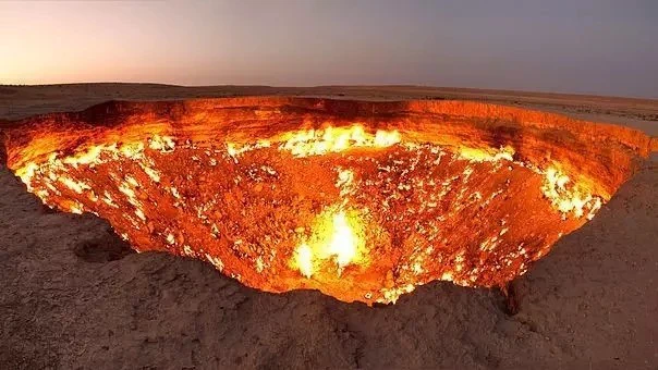 地狱之门(Gates of Hell)位于卡拉库姆沙漠中部土库曼斯坦阿哈尔州。2004年原来的达瓦札村落已废弃而附近地区有丰富的天然气,有3个天燃气坑。1971年当前苏联地质学家进行钻探时,意外地发现了其中这个充满天然气的地下洞穴。钻探装置下泥土倒塌,留下一个直径约50-100米的大洞,为了防止有毒气体外泄 ,他们决定点燃漏出来的天然气。截至2016年,这洞口的火焰从未间断过。当地人称之为“地狱之门“。该洞口的火焰已经持续了整整41年,从未间断。在旁边起灶省了每个月的燃气费。
