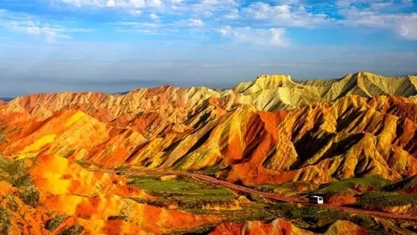 丹霞地貌地质公园彩虹山(ZHANGYE DANXIA Land-form Geological Park)位于中国甘肃省西北部。都知道课本上提及到丹霞地貌,但是这样成片的彩色丘陵确实罕见。著名的张掖丹霞地貌地质公园,热艳的红、油腻的橘、鲜艳的绿和明亮的黄交织在一起。历经几百年甚至几千年的地壳运动、风化剥离和流水侵蚀后才形成的地貌。远看跟好几年前风靡大江南北的“彩虹蛋糕”好像。一个字形容观后感:饿3一条名为浪漫的隧道kelevan火车道