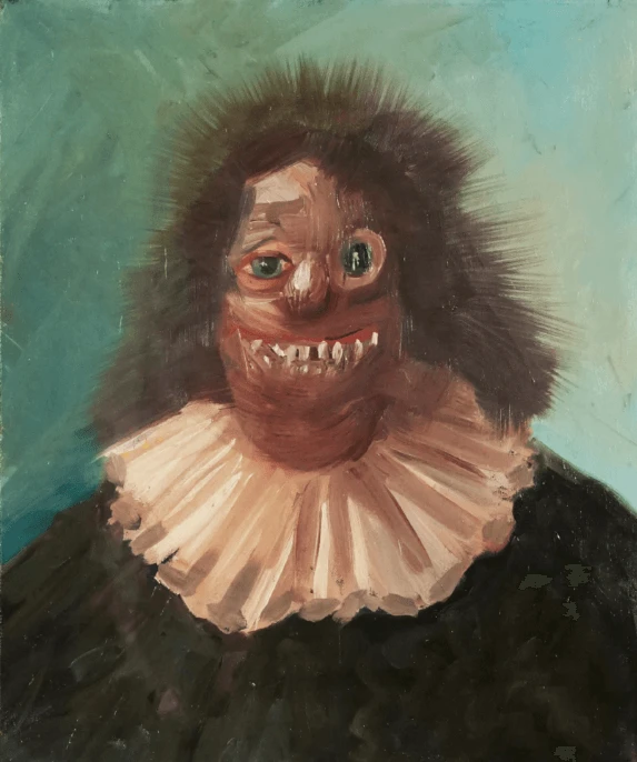 美國當代藝術家喬治·康多(George Condo)以其獨特的肖像畫風格而聞名。其作品《貴族大猩猩》透過端莊的構圖與猩猩扭曲的面孔形成荒誕對比,作品筆觸自由而有力,既像寓言中誇張的人性縮影,也映照當代社會的虛榮與荒謬。