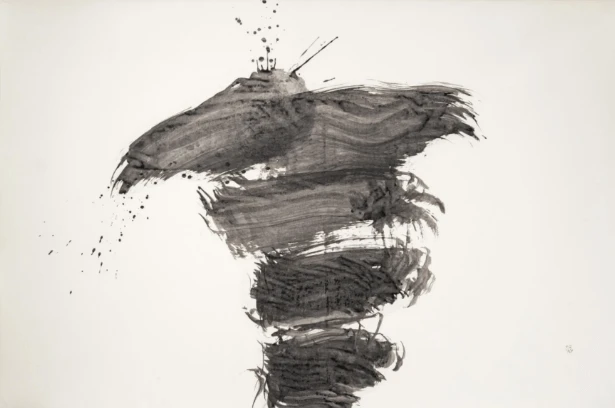 井上有一是將書法帶入現代藝術語境的先鋒。他的「一字書」《抱腹絕倒》(Doubled Up in Laughter)與《会》(Kai),以有限的筆墨創造出無限的精神空間。其充滿力道與韻律的文字,強調了字的造型美與書寫動勢,讓觀者在無境之中感受東方藝術的禪意與哲思。