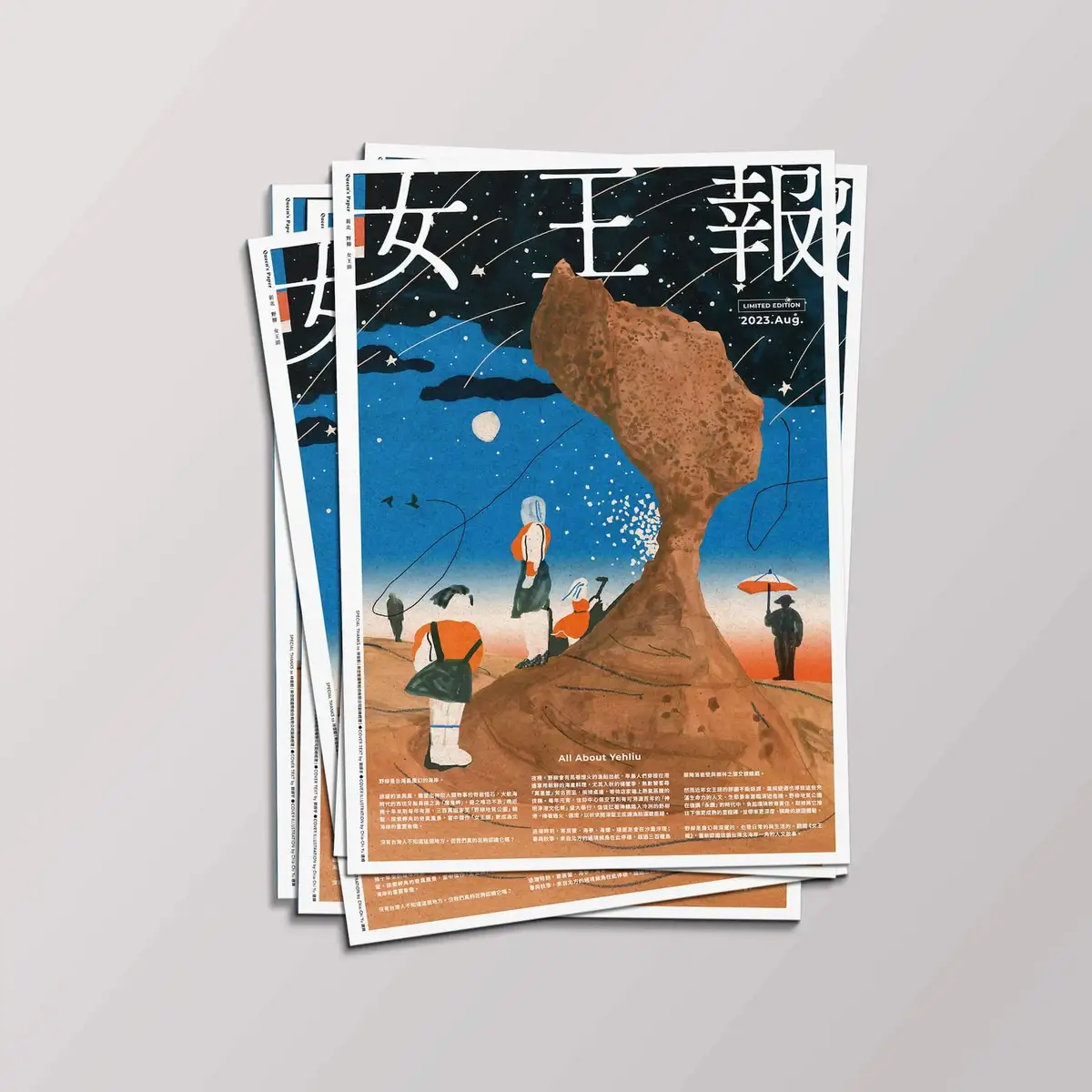 野柳地質公園攜手青鳥文化、一頁文化打造的海邊書店——「女王的書店」於8/11正式開幕,並與《VERSE》編輯團隊出版風景區限定刊物《女王報》, 這份地方小報特別邀請國際知名插畫家達姆以女王頭為題,描繪野柳自然奇景的樣貌,並收錄野柳地質歷史、漁港職人故事與吃喝玩樂地圖,該刊物目前僅能於「女王的書店」限量免費索取,以及隨《VERSE》10月號出刊!