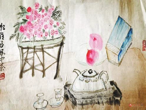 国画《忆往事杯中茶》 作者 孙悦(驻马店广播电视台)
