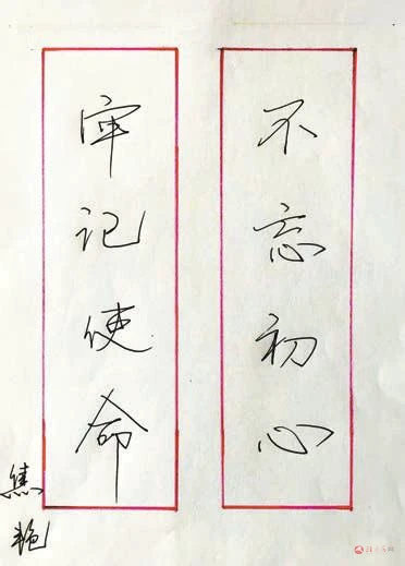 硬笔行书《不忘初心牢记使命》 作者 焦艳(驻马店广播电视台)