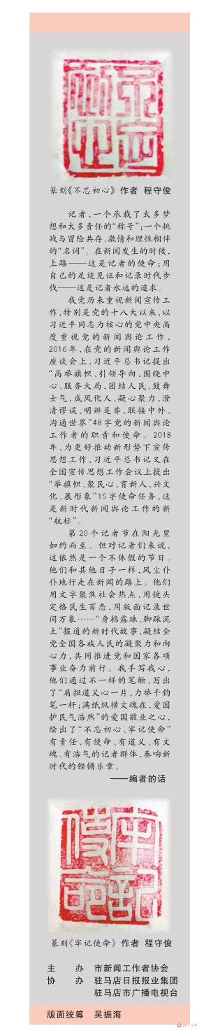 楷隶行书《题记者节》 张承训 撰 胡广林 书(驻马店日报报业集团)