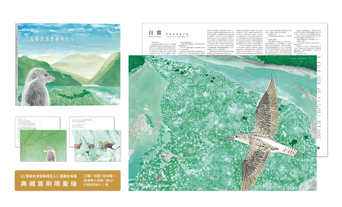 台灣知名文學作家吳明益,繼2023年作品《海風酒店》,他在虛實交錯的敘事間,引導讀者省思經濟建設與生態環境的破壞代價。今年度新作《三隻腳的食蟹獴與巨人》吳明益首度利用圖像繪畫,延伸自《海風酒店》:「我得畫一個故事來挑戰、抵抗他們的故事,我得畫一個故事來挽回故事。」