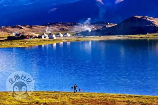 湖畔水草丰美,常有柯尔克孜牧民在此驻牧。遇到晴朗的天气,碧水倒映银峰,湖光山色浑为一体,更使人迷恋。
