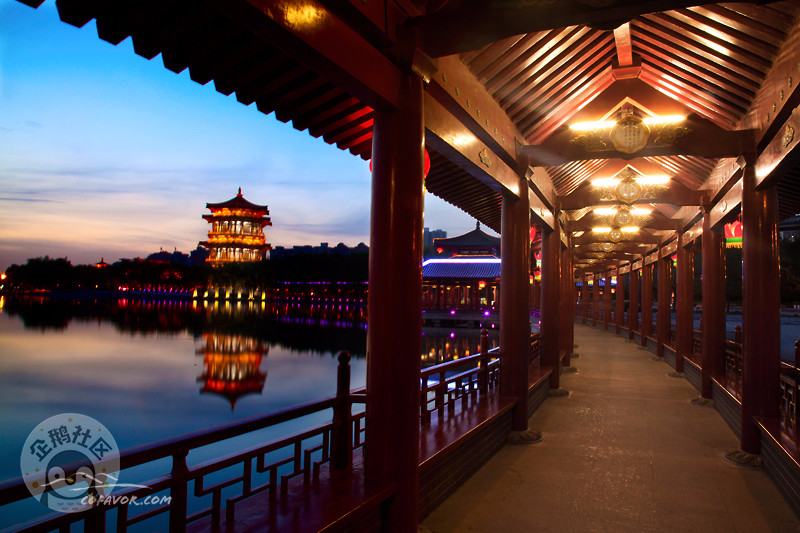 8、曲江南湖。在大雁塔、大唐芙蓉园附近,一处休闲的好去处,面积很大,不要门票。绿化非常不错,这里唐风很浓,傍晚遛弯感觉很好。周围无论是大雁塔还是大唐芙蓉园,夜景都是蛮美的。再加上周边的各种小资文艺咖啡厅、餐厅较多,非常适合带外地朋友来逛逛。