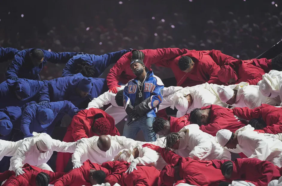 今年在葛萊美拿下五大獎,包含擊敗Billie Eilish、Taylor Swift等人拿下年度歌曲後,Kendrick Lamar又在美國職業美式足球大聯盟(NFL)冠軍賽的超級盃,成為首位擁有個人秀的饒舌歌手,締造歷史紀錄。13 分鐘的表演宛如一場音樂和視覺盛宴,戲劇化的舞台設計吸引觀眾目光。