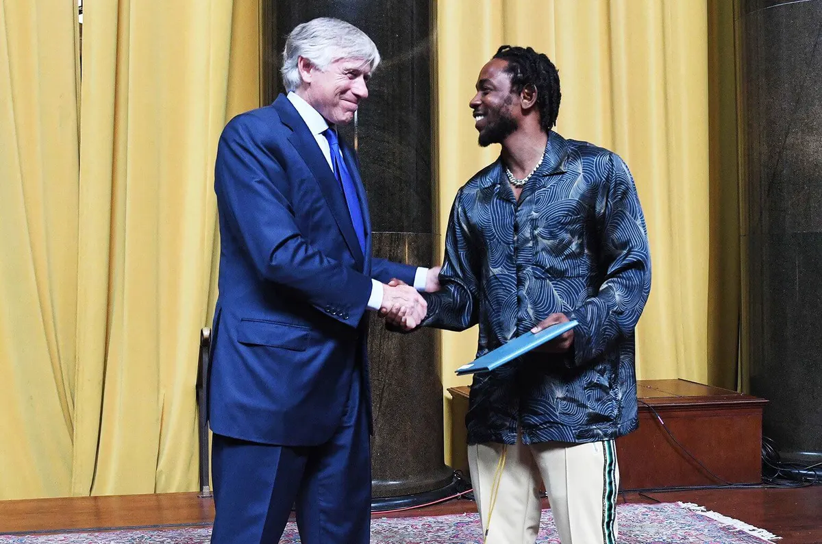 Kendrick Lamar從時任美國哥倫比亞大學校長Lee Bollinger接下普立茲