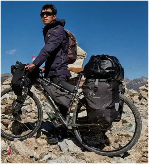 选择骑行则是很偶然的想法。在出发之前,徐云完全没有骑行和户外的基础,外加徐云从小到大体质都比较弱,第一天骑了大概两三公里后,便全身冒汗,反胃,剧烈呕吐。他和“战车”也还没有形成默契,那是一辆他在一月前刚购置的1000块钱左右的国产自行车。对于打算长途骑行的人来说,是较为便宜的选择了。