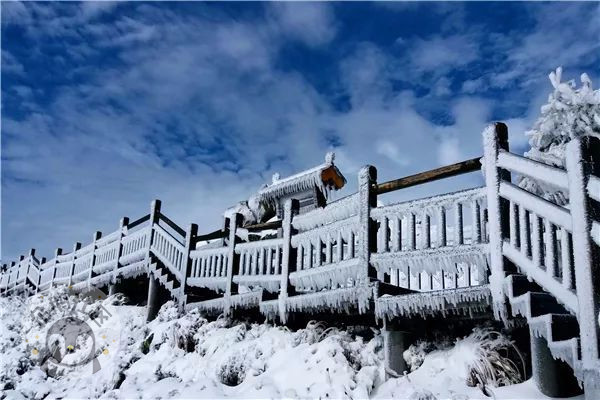 万峰千壑,堆银砌玉,树弯枝垂,晶莹皎洁,崖壁九凌如冰排倒挂,雪松冰花似珍珠剔透。碧潭变银盘,溪流成素绢,瀑布状如水晶帘,冰清玉洁,美不可言。