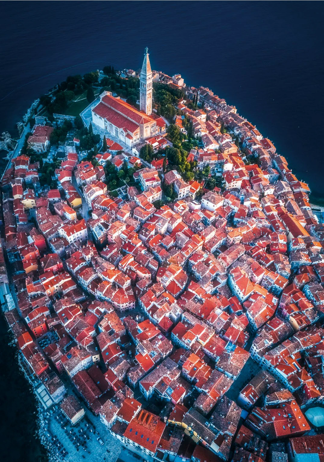 罗维尼是此行最后一站。尽管自古就有人类在这里活动,但是罗维尼(Ronivj)这个地名在近代之前是没有的。公元2世纪,罗马人将岛上一个他们认为无足轻重的小渔村命名为罗维尼奥(Rovigno)——这是一个意大利味十足的名字。罗马帝国分裂后,小岛被归为东罗马帝国,也就是拜占庭所有,改名为鲁比尼城堡。13世纪,威尼斯共和国开始统治这个地方。