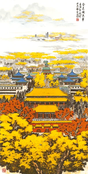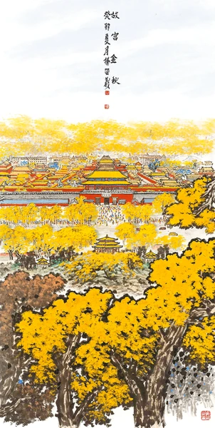 本次展览中,《祖国首都——北京》《金色映京华》等作品以城市山水的艺术形式描绘了北京中轴线上的诸多风景名胜和人文风情,以《北京中轴线永定门》“开篇”,从《天坛之歌》《中华之前门》到《巍峨北京钟鼓楼》《威武德胜门》,从《故宫金秋》的满溢金黄与正红到《登临望颐和》《颐和清心》《皇家御园——北海》《玉泉翠谷》充盈的青山绿水无不反映出艺术家的创作理念。(摘自《中国美术报》)