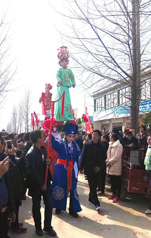 入选驻马店市第六批非遗项目的夭庄小装,是一种融戏剧造型和杂技娱乐表演为一体的大型民俗活动。小装内容形式独特,分上下两层,下层扛装人为身强力壮的男性,上层为4~6岁儿童。扛装人和上装儿童上下总高4米左右,他们身穿戏服、手持道具,配合鼓点进行表演。