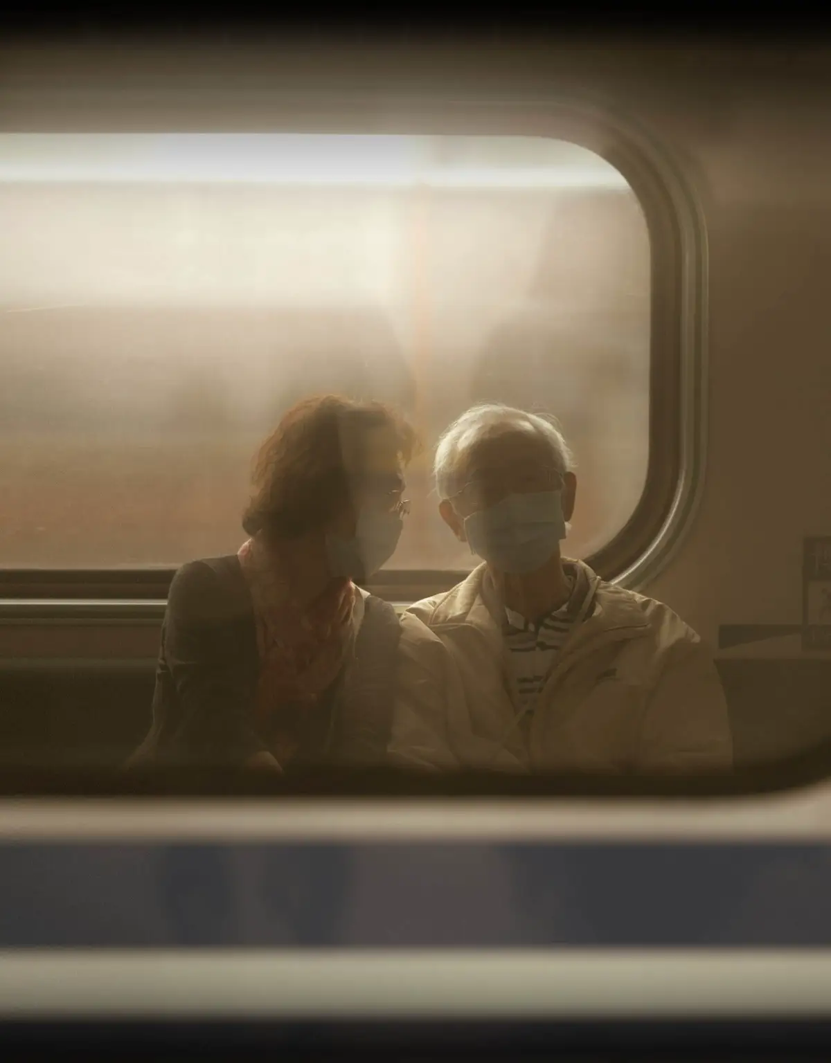 這張照片是我在火車上拍的。突然想起一首叫〈Grow old with you〉的歌,裡面有一句歌詞是「我想在你難過時逗你笑,在你關節炎發作時背著你走,我只想和你一起慢慢變老。」我們每個人,包括我自己,都夢想著能和所愛的人一起慢慢變老。