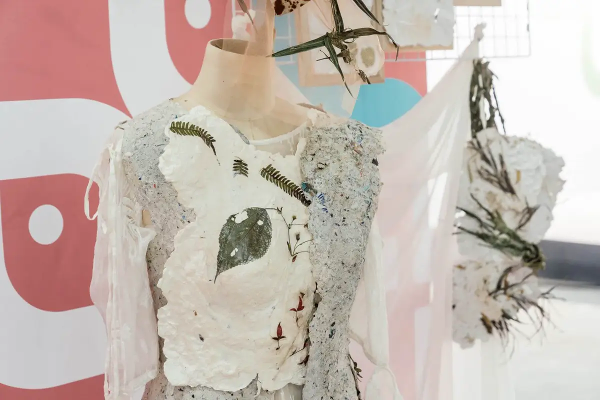 由再生紙漿和在大溪採集到的植物,一點點在人台上塑型,與二手衣物組合搭配,製作成具軀體輪廓,但不具明確完整造型的型態,試圖留下光、海浪、聲響穿梭的路徑,與大溪國小學生的手抄紙作品相互對話。回憶總是零散、片段,藉由行動和物質的編織,重組成看似清晰,卻可從觀者視角重新詮釋。