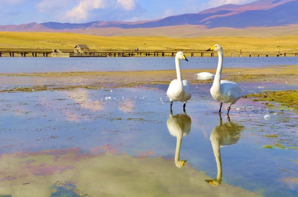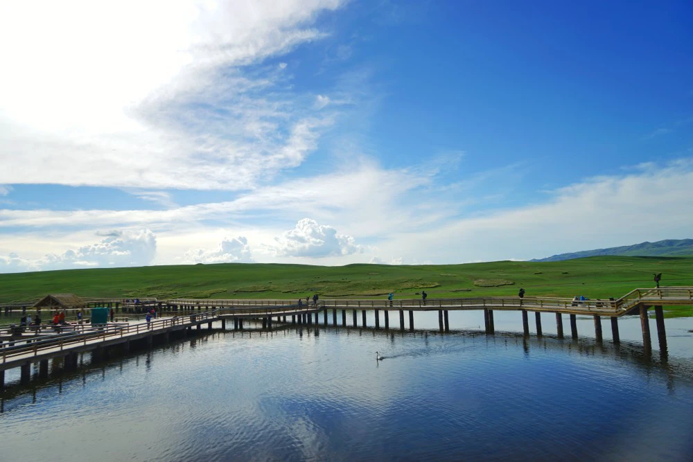 著名的天鹅湖就坐落在草原上. 天鹅湖实际上是由众多相互串联的小湖组成的大面积沼泽地,这是全国第一个天鹅自然保护区。 每年3-4月,以大天鹅、小天鹅和疣鼻天鹅为主的一万多只珍禽飞来此地繁衍生息,至10-11月再迁离,居留期长达半年以上。