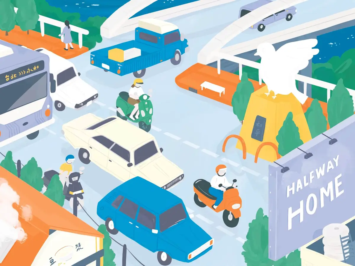 《Halfway Home 回家途中》書中挖掘永和歷久彌新的味覺記憶,包括客家小館、世界豆漿大王,開箱藏身巷弄的驚喜小吃,也走讀瓦磘溝,為福和橋下的跳蚤市場與全台最韓的中興街賦予新意,並在保福宮與福德宮、楊三郎美術館裡取得身心平靜。