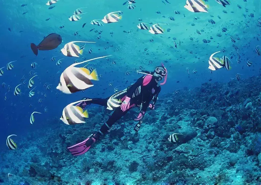 潜水:没见过海底人,真的无法想象这一波碧水之下,藏着怎样一眼万年的美景,鱼儿在身边游来游去,开心的和它打个招呼,再去相遇下一个可爱的蓝精灵。