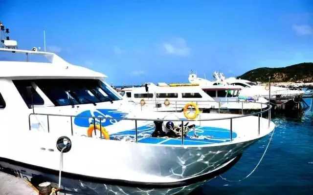 码头每天有轮船往返蜈支洲岛与海南岛陆地之间,接送游客上下岛。轮船每20分钟一班,若为团队,则随到随开。