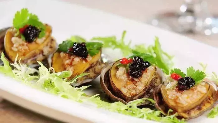 蒸鲜鲍:鲍鱼是一种原始的海洋贝类,上锅清蒸之后,浇上调制好的料汁儿,新鲜肥美。