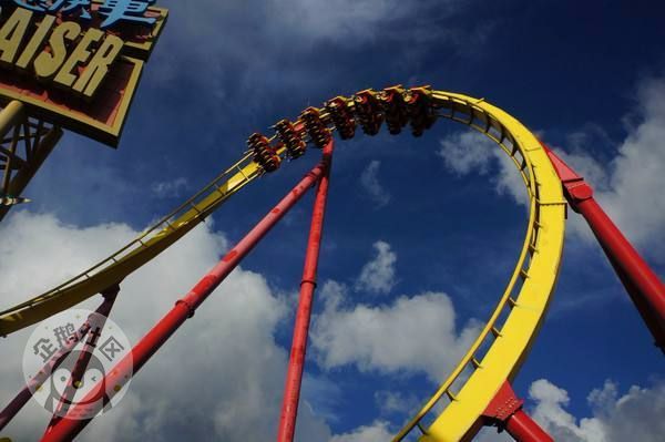 2、飞翼过山车。位于重庆欢乐谷,是全国唯一一台山地版飞翼过山车。当车体攀到轨道最高处,就是一个向下俯冲,紧接着是回旋翻滚,再是最高点的一个360度回环,落差有50余米,相当于10多层住宅楼的高度,人坐上去,别提有多刺激了。