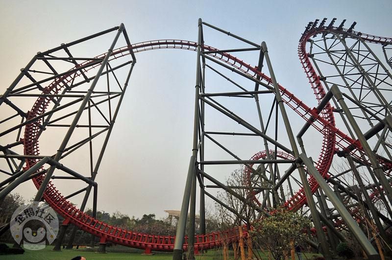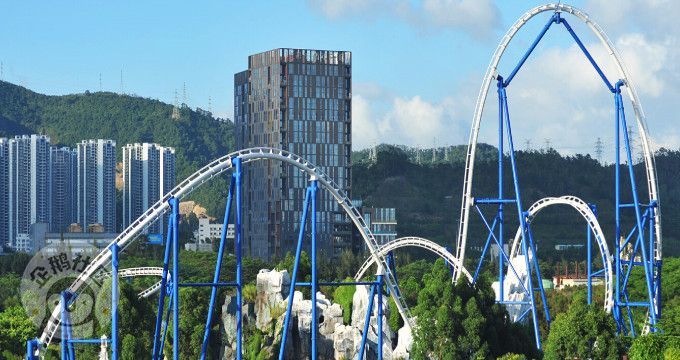 6、火箭过山车。位于广州长隆欢乐世界,是全亚洲首台火箭过山车。火箭过山车高45米,轨道全长近300米,全程仅需45秒。由于应用弹射技术,火箭过山车时速可从0瞬间加速到超过100公里,回旋直上加速,过山车旋转360度直达近50米最高处短暂失重之后,紧接着又来一个360度的旋转在半空翻腾到垂直90度的坡度,飞奔直冲地面。