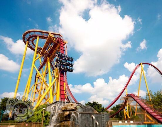 3、垂直过山车。位于广州长隆欢乐世界,高度60米,长度981米,时速112km,是亚洲第一座无地板的带翻转的垂直下坠、带水力刹车的过山车,具有“全球过山车之王”之称。在第一排最高点突然停下来感觉很无助,而且人是垂直倾斜状态,十分刺激。