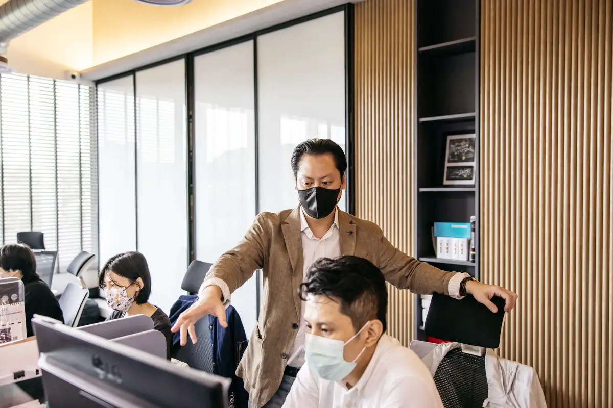 除了開拓產品線與通路,張德成也將廠區改造納入突破與創新的藍圖中。踏著台階一路走到三樓辦公區,大面的窗戶將戶外的綠意與陽光引入屋內,十分宜人。作為一位美術與室內建築設計出身的人,張德成習慣以美學的角度去看事情。許多人可能會誤以為美學就是把東西設計得很漂亮,但張德成卻認為那充其量只是「好看」的設計,而不是「好」設計:就像辦公室改裝如果只是外觀好看,但員工未必感受到舒適和安全,或產品外包裝充滿新穎的視覺設計卻不好撕開,又或者印花口罩擁有亮麗的配色,但折線不服貼、內襯材質也不夠親膚等,這些都不能被定義為好設計。「我認為兼具美、實用和故事,才是真正的好設計。」
