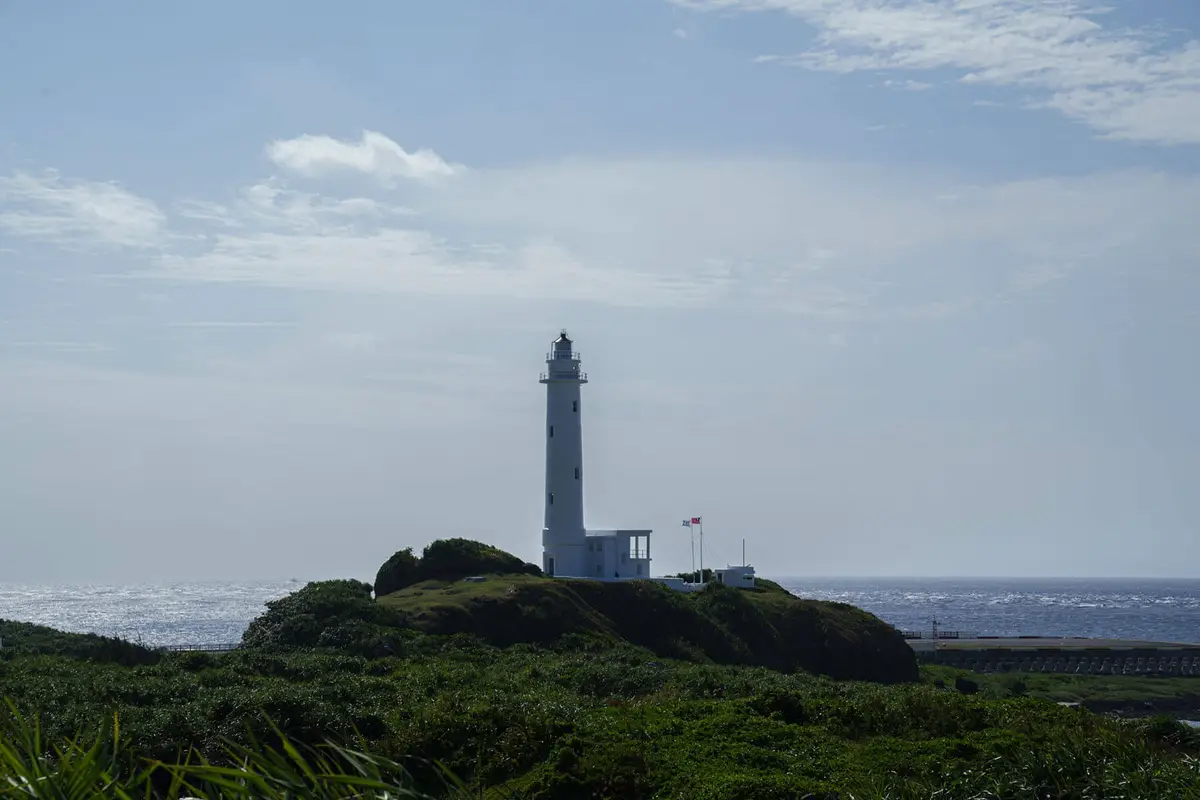 座落在綠島西北方海岸的綠島燈塔,獨身矗立在山坡,全白的塔身被綠地包圍。是島上居民的方位指引,更是深藍太平洋上功不可沒的領航指標。