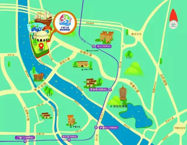 华夏文旅集团在西安浐灞生态区倾力打造华夏文旅(西安)度假区,项目总投资28亿元,以中国传统文化为依托,充分结合地域民俗文化,以丝绸之路为背景,以广运潭传说故事、大唐文明丝绸之路为主线建设五大模块:会跑的实景演艺《驼铃传奇》秀、【先祖部落景区】、【华夏文旅西安海洋王国】、【华夏文旅水陆乐园】、配套服务的商业街及酒店,着力打造西安当地的文化旅游特色名片。