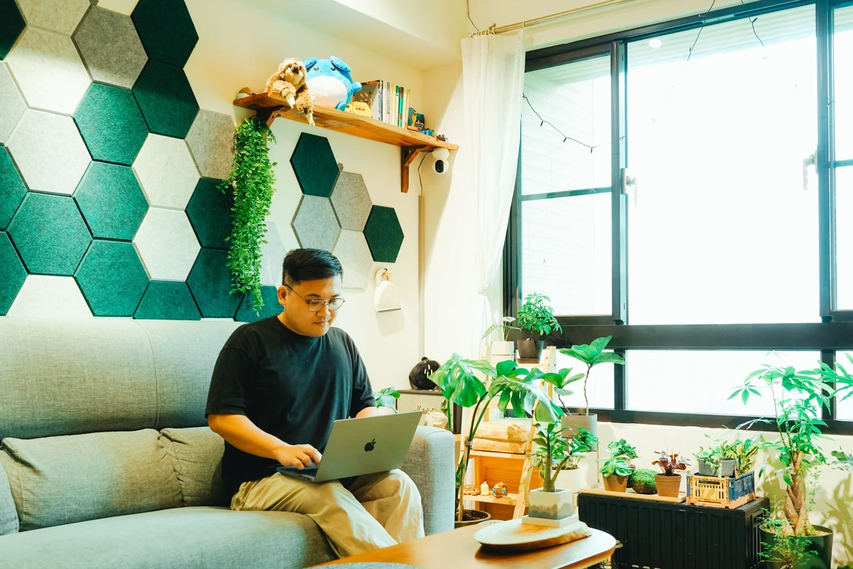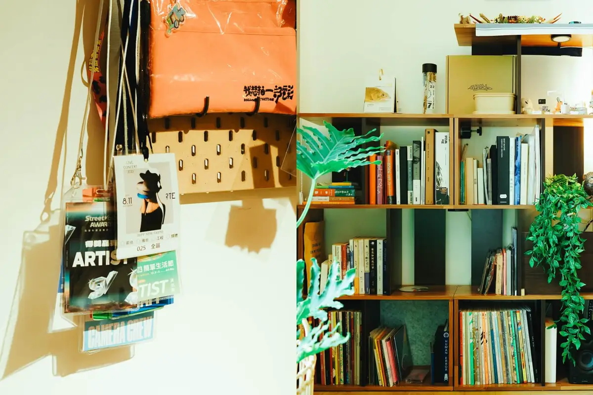環顧戴居的住家兼工作室,書架與書櫃佔了不少空間,裡頭擺滿唱片、雜誌,還有林林總總裝幀精緻的書籍,感覺靈感在這裡俯拾即是。他喜歡靠窗的沙發座位,窗邊擺滿觀葉植物,這些植物就形同調劑工作的療癒介質。