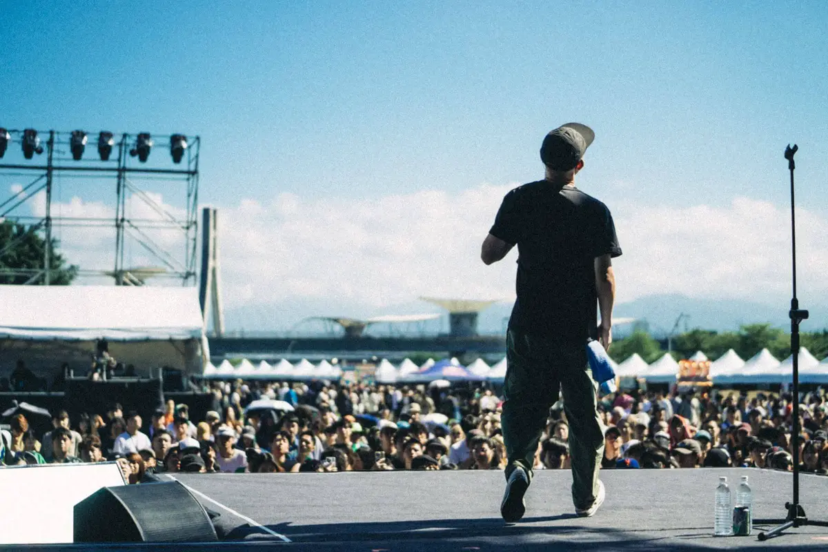 日正當中,一襲黑帽、黑T-shirt的Lu1開口便讓燥熱的空氣緩和下來,觀眾不畏艷陽往台前聚集,抓住這難能可貴的30分鐘,隨著扎實的節奏、韻腳和靈動的爵士音樂搖擺。