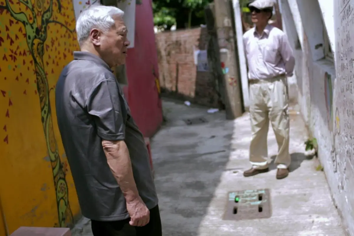瘂弦與詩人張默(圖右)於高雄左營舊地重遊。(圖片/目宿媒體提供)